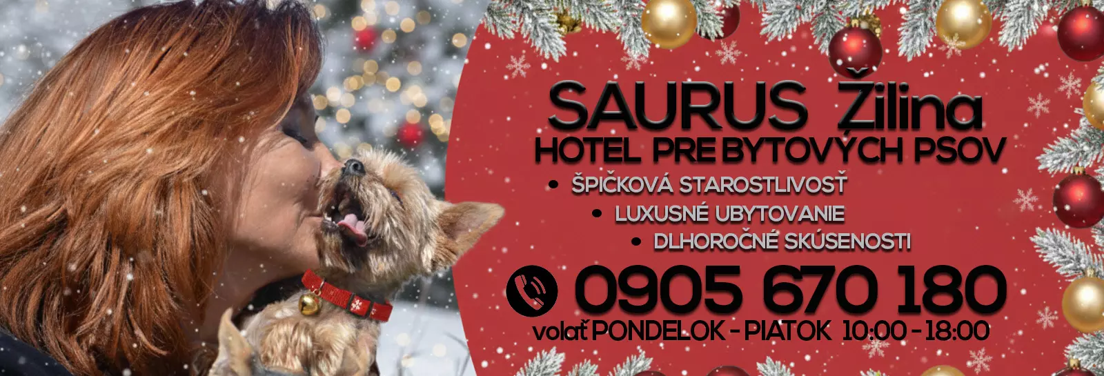 Hotel pre psov SAURUS v Žiline je vysoký nadštandard medzi hotelmi pre vnútorných psov či už luxusným ubytovaním, obrovskými oplotenými výbehmi, ako aj špičkovou starostlivosťou o psov. Sme tu pre majiteľov, ktorí potrebujú krátkodobú aj dlhodobú starostlivosť o psa, keď s ním práve nemôžu byť a záleží im na tom, aby pes bez nich nie len prežil, ale ABY SI POBYT AJ UŽIL. Maximálne sa všetkým venujeme, majú u nás kvantum pozornosti a rôznych aktivít. Náš hotel ako jediný nerobí žiadne iné činnosti, venuje sa len a len hotelu 24/7 po celý rok.